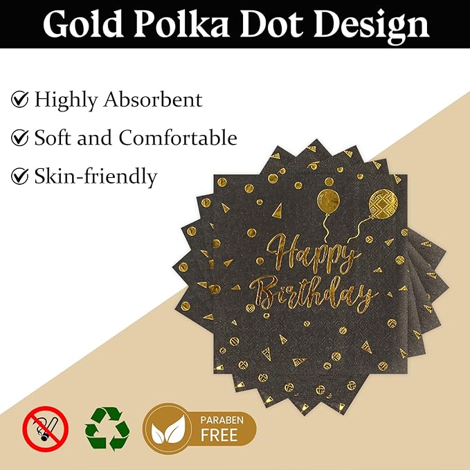 - Golden Dot Design: Birthday plates and napkins are decorated with gold polka dots in a very stylish and aesthetically pleasing design with brilliant and attractive colors, every guest will love this beautiful design, ideal for multiple themed celebrations