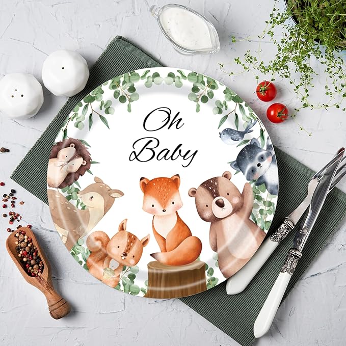 - 【Premium Quality】 Made from high-quality, eco-friendly paper, these plates and napkins are sturdy, odor-free, and resistant to heat and oil. The vibrant, fade-resistant prints stay bright, making your woodland-themed baby shower visually stunning while keeping cleanup hassle-free!