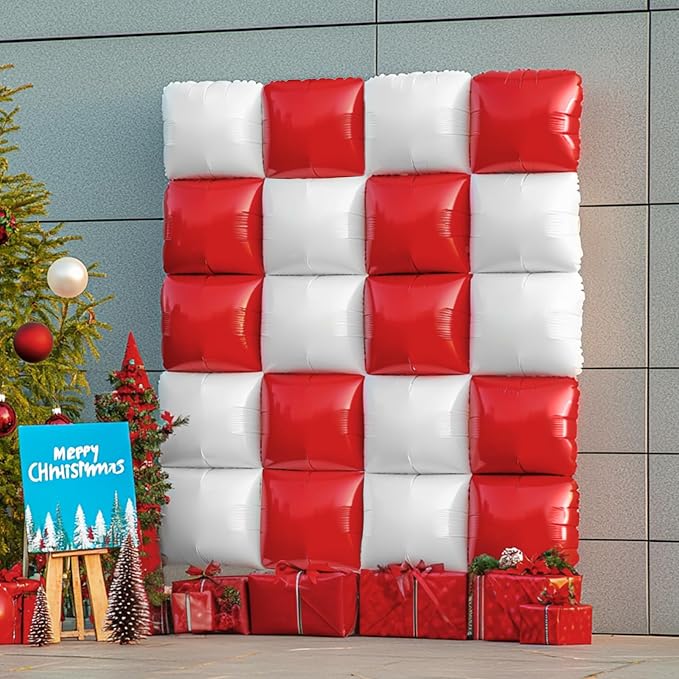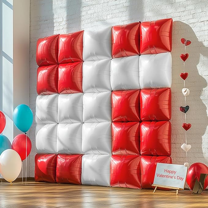 - Valuable Package: You will receive 48pcs square foil balloon wall with red on one side and pearl white on the other side. Each square balloon measures 19*19 inches before blowing and 13*13 inches after blowing. Our foil balloon wall backdrop is crafted from high quality mylar material. Compared to latex balloons, aluminum foil balloons can maintain their shape for a longer period of time and are less likely to leak or pop