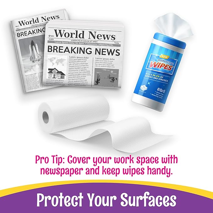 - Food Safe Dye – Non-toxic, food-safe dye allows for safe decorating and ensures your eggs are safe to eat. Be sure to refrigerate your decorated eggs for freshness.