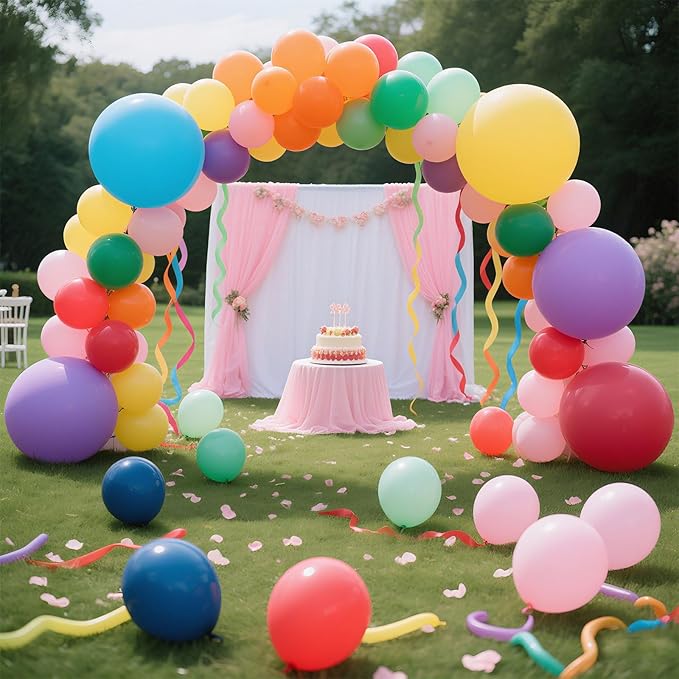 - Vibrant Rainbow Party Decorations:Transform birthdays, baby showers, weddings, or themed parties with these assorted rainbow latex balloons!Mix 10 bold colors to create eye-catching balloon arches, rainbow birthday decorations, or festive backdrops.Perfect for indoor and outdoor celebrations, these colorful balloons add a joyful touch to any event.