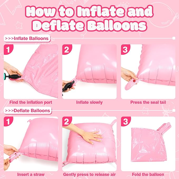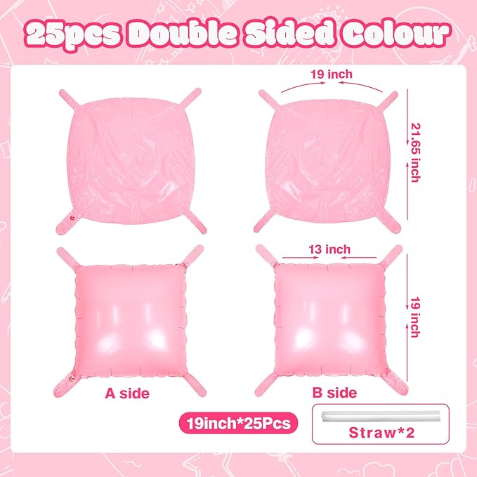 - Reusable and Recyclable: These double side light pink foil square balloons wall decorations can be used to decorate indoor walls, floors and ceilings, as well as outdoor doorways. When the perfect party is over, separate the square balloons, then deflate them by inserting a straw into the inflator to recover and reuse them for your next event while also helping to reduce waste