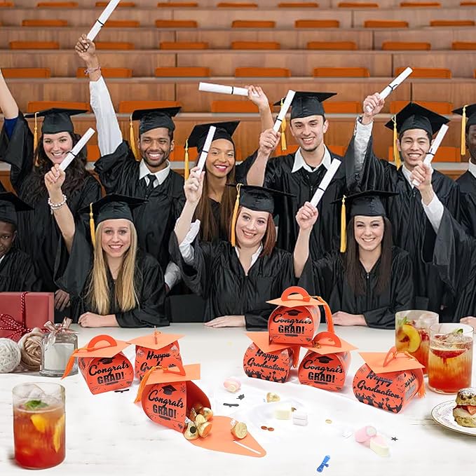 - High Quality Material: These graduation favor boxes are made of premium, food grade cardboard paper, safe, sturdy and durable enough for desserts, snacks and gifts. The orange grad cap gift boxes are paired with orange tassels making them not just functional containers, but also charming graduation decorations for the special occasion
