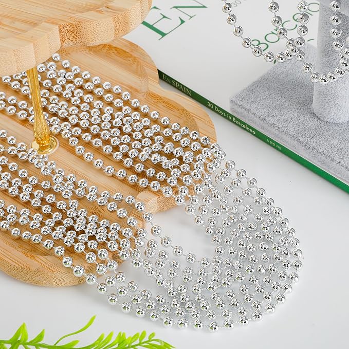 200PCS Bead Necklace, Silver Christmas Bead Stuff Party Favors, 33" Xmas Necklaces Women and Men, Festival Events Parade Throw Accessories for Wedding Birthday Celebrations Decorations