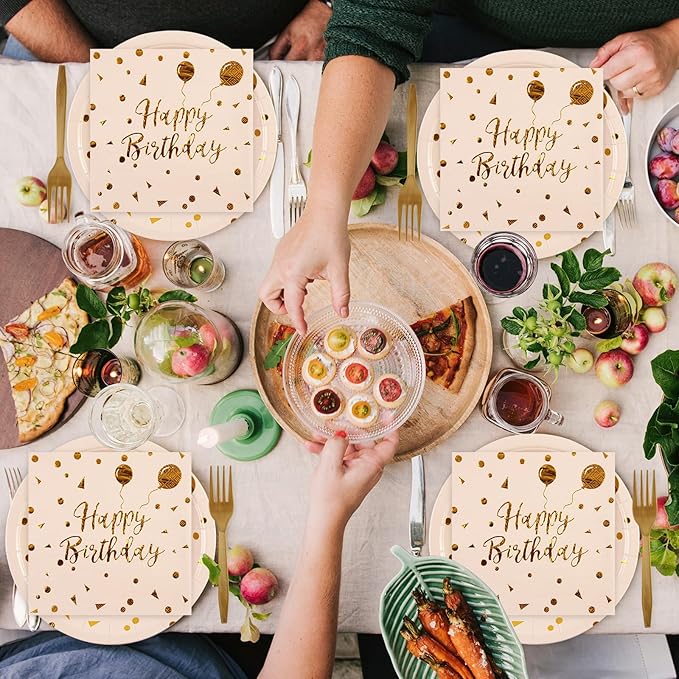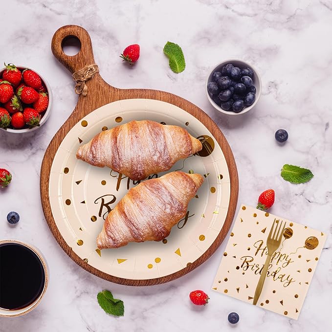- Golden Dot Design: Birthday plates and napkins are decorated with gold polka dots in a very stylish and aesthetically pleasing design with brilliant and attractive colors, every guest will love this beautiful design, ideal for multiple themed celebrations