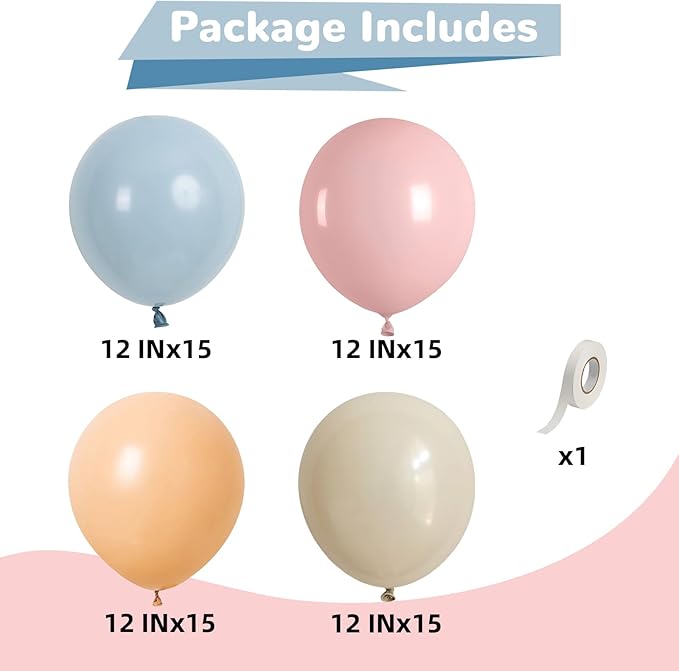 - Variety of Colors: Includes 12 inch 15 pcs matte blue balloons, 12 in 10 pcs nude pink balloons, 12 in 15 pcs cream balloon, 12 in 15 pcs neutral helium balloons