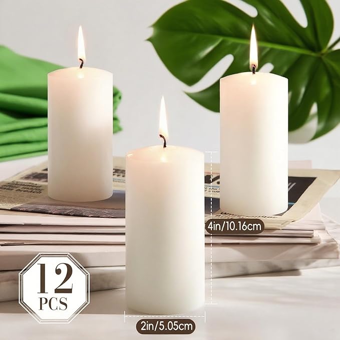 - Multi-Pack Value for Bulk Use or Gifting: Each purchase includes a pack of 12 unscented white pillar candles bulk, offering exceptional value for those who need multiple candles for large events or simply want to stock up for future use. The multi-pack format is also ideal for gifting, whether for weddings, housewarmings, or holidays.
