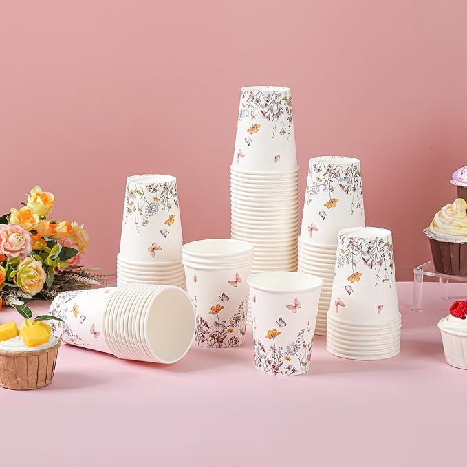- Sufficient Package & Party-Ready: 100 premium disposable cups in a coordinating wildflower and butterfly pattern - perfect for large gatherings without having to worry about last-minute supplies. Ideal for hosts who prioritize worry-free event planning