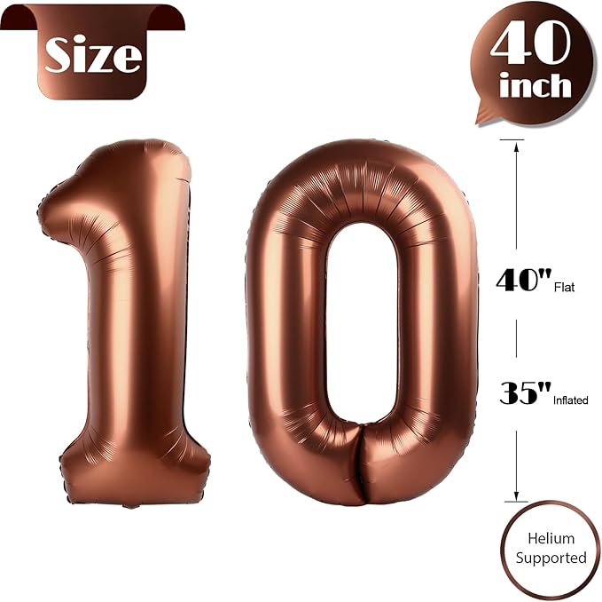 - 【Make a Statement with 40-Inch Number Balloons】Elevate your birthday bash with our coffee brown 40-inch number balloons. Not only do they create a vibrant backdrop for photos, but the coffee brown 10 balloon for a 10th birthday also serves as fun props, guaranteeing your party's style and memorability. Add some sparkle with our stunning coffee brown 10 balloon number and make your loved one’s special day truly unforgettable!