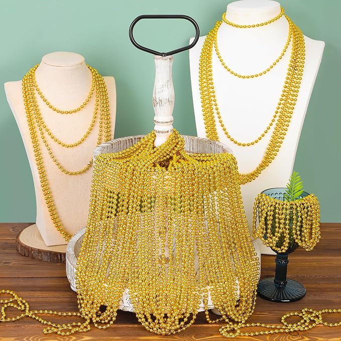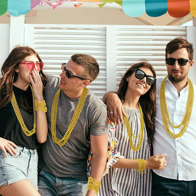 200PCS Mardi Gras Beads, 33" Gold Bead Necklaces Stuff, Mardi Gras Christmas Beads Costume Necklace, Festival Parade Throw Accessories for Wedding Birthday Pirate Party School Activities Supplies