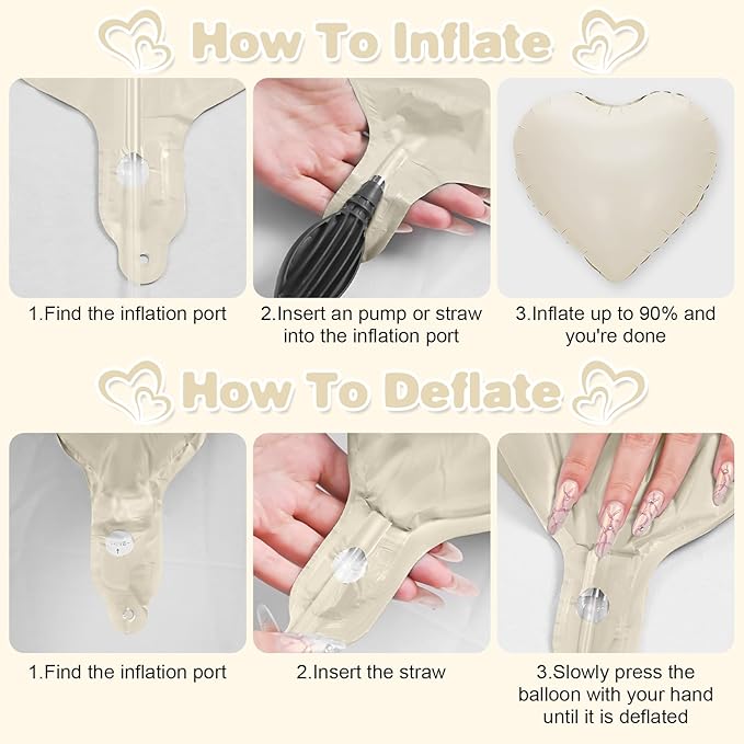 - 【EASY USE】Our heart shaped foil balloons are very easy to inflate,the straw inside the package helps you to inflate the balloon,the balloon can be filled with air and helium,after filling the balloon,you can pinch your finger to the position of the inflatable mouth to seal it automatically.