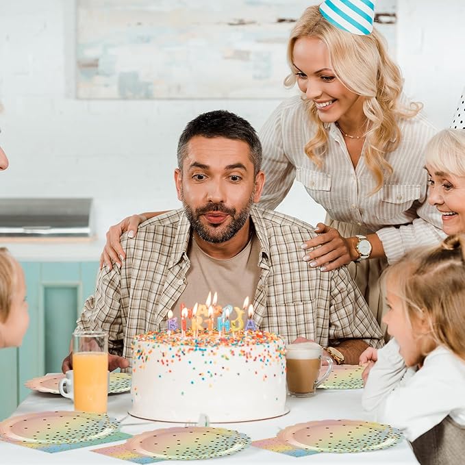 - 【WIDELY APPLICABLE】: Disposable colourful and gold dot paper plates are suitable for all events and occasions, like weddings, engagement parties, birthday parties, children's parties, anniversaries, retirement parties, baby shower, bridal show, bachelorette party, banquets, reunions, business meetings, graduation parties, family dinners, holiday gatherings and other occasions. Perfect for all ages.