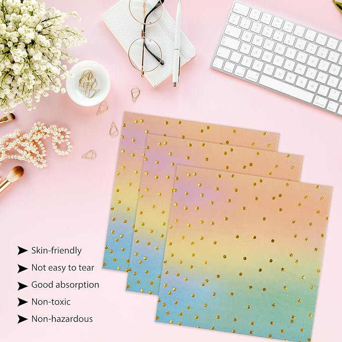 - 【25 GUESTS PARTY TABLEWARE SET】: Colorful and gold plate party set includes 25 x 7 Inch paper dessert plates, 25 x 6.5 Inch luncheon napkins. Serves up to 25 guests, beautiful and fresh colors, these pastel paper plates perfect for your various party tableware.