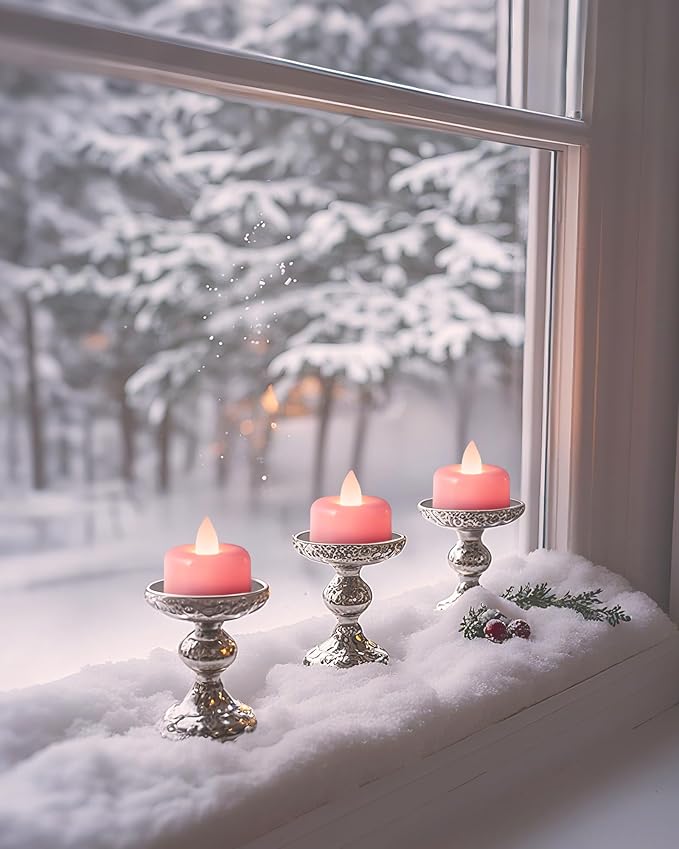 - 24 PACK PINK CANDLES: Battery tealight candles (size: D1.5 "x H 1.3"). Perfect mini size for most fireplaces, tea light votive candle holders, Easter eggs, pumpkins, luminary bags