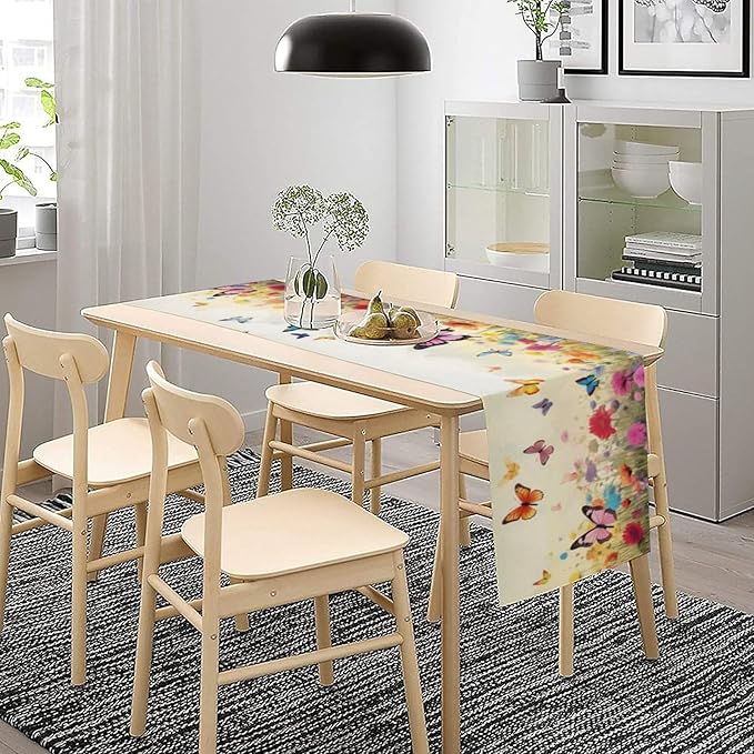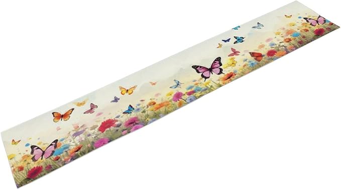 Butterfly Table Runner, Wildflowers Floral Butterfly Table Decoration Seasonal Spring Summer Home Kitchen Dining Table Indoor Outdoor Farmhouse Decor 13x120 Inch