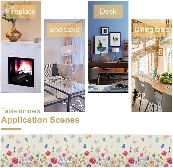 Butterfly Table Runner, Wildflowers Floral Butterfly Table Decoration Seasonal Summer Home Kitchen Dining Table Indoor Outdoor Farmhouse Decor 13x90 Inch