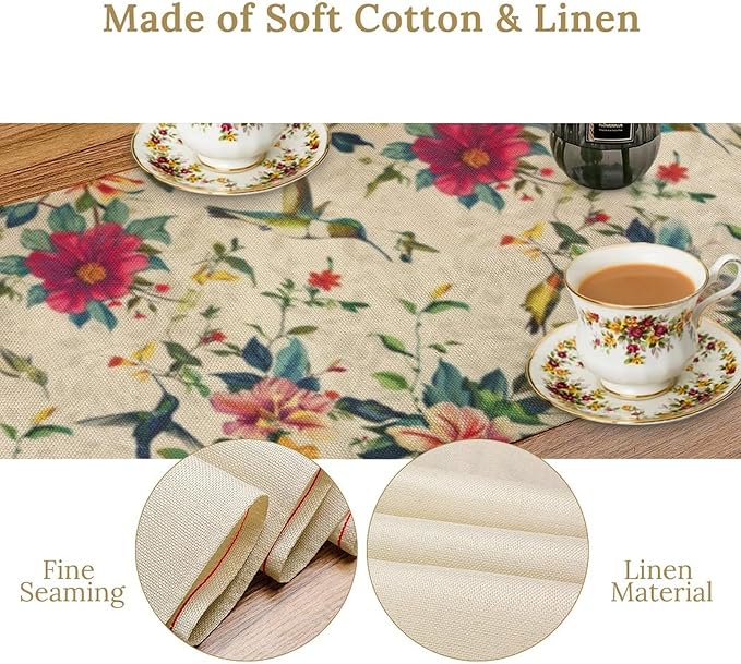 Summer Bird Floral Table Runner,Spring Birds Table Runner Burlap Table Decoration for Seasonal Home Kitchen Dining Dinner Indoor Holiday Farmhouse Decor 13x108 Inch