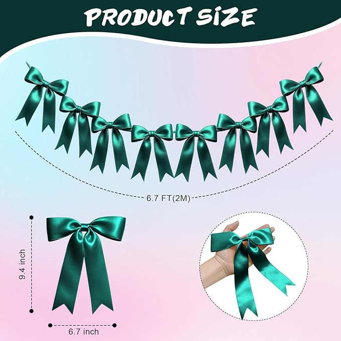 - Pre-strung&No DIY Required: Eonsui bow garlands are fully assembled, with 8 beautifully crafted bows already attached to a string, so there’s no need for extra assembly on your part, saving your time when decorating. Each garland measures 6.7 feet (2 meters) in length and includes 8 bows, each bow measuring 9.4 inches by 6.7 inches, making it suitable for decorating walls, windows, tables, beds, etc.