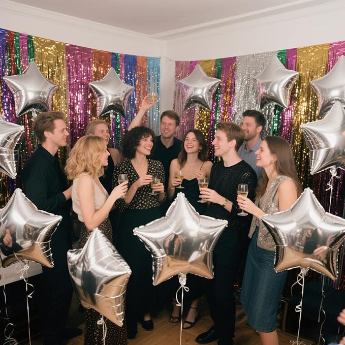 - APPLICATION: Our star balloons foil mylar balloons silver decor are suitable for birthday parties, anniversaries, weddings, graduations, retirements, baby shower, Halloween, New Year's, Christmas or any other party decorations you want! The silver metallic balloons are suitable for any occasion, and the various colors will make your party more luxurious. Graduation foil balloons are perfect for indoor and outdoor decorations and you can combine them with other ribbons and colored lights.