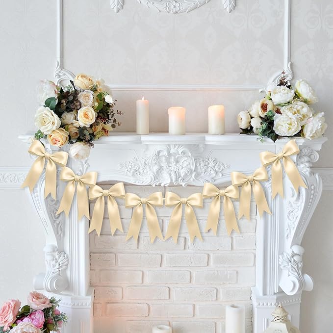 - Pre-strung&No DIY Required: Eonsui bow garlands are fully assembled, with 8 beautifully crafted bows already attached to a string, so there’s no need for extra assembly on your part, saving your time when decorating. Each garland measures 6.7 feet (2 meters) in length and includes 8 bows, each bow measuring 9.4 inches by 6.7 inches, making it suitable for decorating walls, windows, tables, beds, etc.
