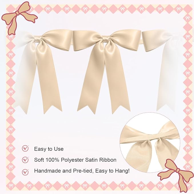 1 String of 8PCS Champange Bow Garland Banner Decoration,Pre-Strung Satin Ribbon Ornaments for Birthday,Bachelorette Party,Bridal Shower,Wedding,Engagement,Baby Shower,Graduation Decor,Anniversary