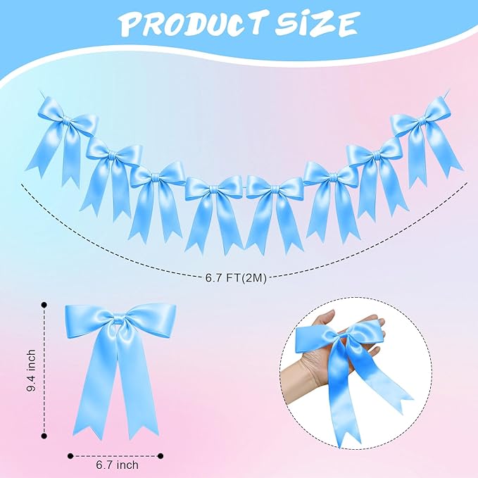 - Pre-strung&No DIY Required: Eonsui bow garlands are fully assembled, with 8 beautifully crafted bows already attached to a string, so there’s no need for extra assembly on your part, saving your time when decorating. Each garland measures 6.7 feet (2 meters) in length and includes 8 bows, each bow measuring 9.4 inches by 6.7 inches, making it suitable for decorating walls, windows, tables, beds, etc.