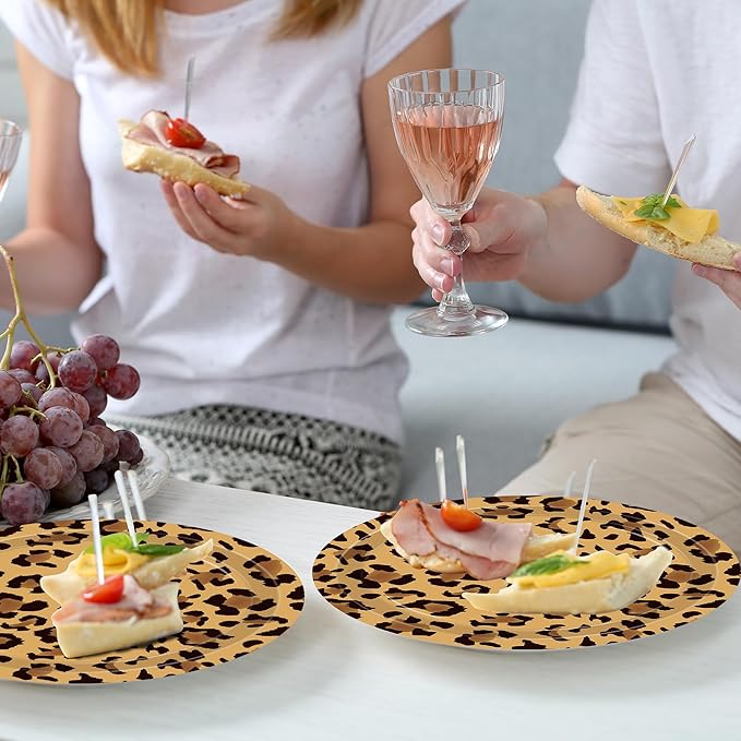 - Cheetah Print Party Decorations Design Concept: This set of leopard party decorative plates features classic brown patterns to add a more dreamy touch to your party. our leopard print party decorations set are versatile and perfect for various occasions such as celebrating a leopard theme birthday, jungle animal theme parties, leopard print parties, bridal showers, animal print parties, cheetah print birthday, or just a fun night in with friends, our leopard party decorations are sure to make your party unforgettableo