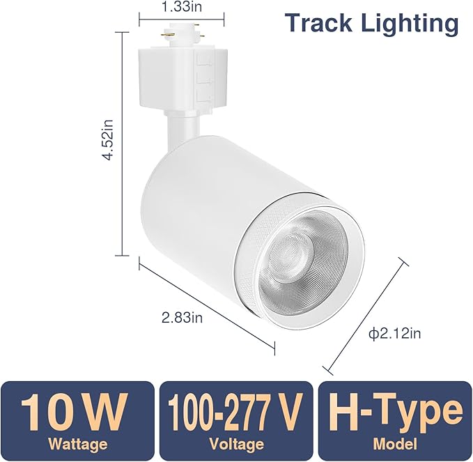 10W LED White Track Lighting Heads, H Type Track Lighting Rail Ceiling Spotlight for Accent Task Wall Art Exhibition Lighting, and Wall Art Display Illumination 3000K-5700K, CRI90+ (6-Pack