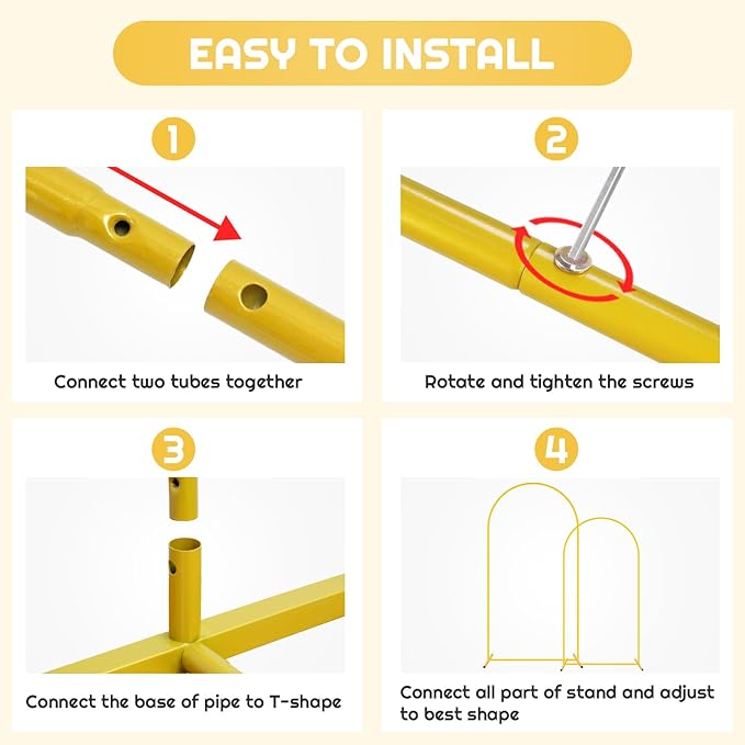 - đ„ăEasy Installation - Arch with Cover BackdropăThe metal arch stand connection is designed with screws, which is easy to disassemble and assemble in several minutes. Simply stretch the arch backdrop cover to slip over the arch frame, adjust as necessary, and then enjoy the effortless elegance it brings to your event.