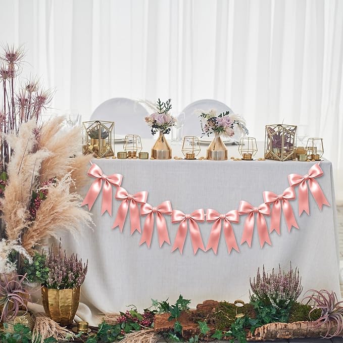 - Pre-strung&No DIY Required: Eonsui bow garlands are fully assembled, with 8 beautifully crafted bows already attached to a string, so there’s no need for extra assembly on your part, saving your time when decorating. Each garland measures 6.7 feet (2 meters) in length and includes 8 bows, each bow measuring 9.4 inches by 6.7 inches, making it suitable for decorating walls, windows, tables, beds, etc.