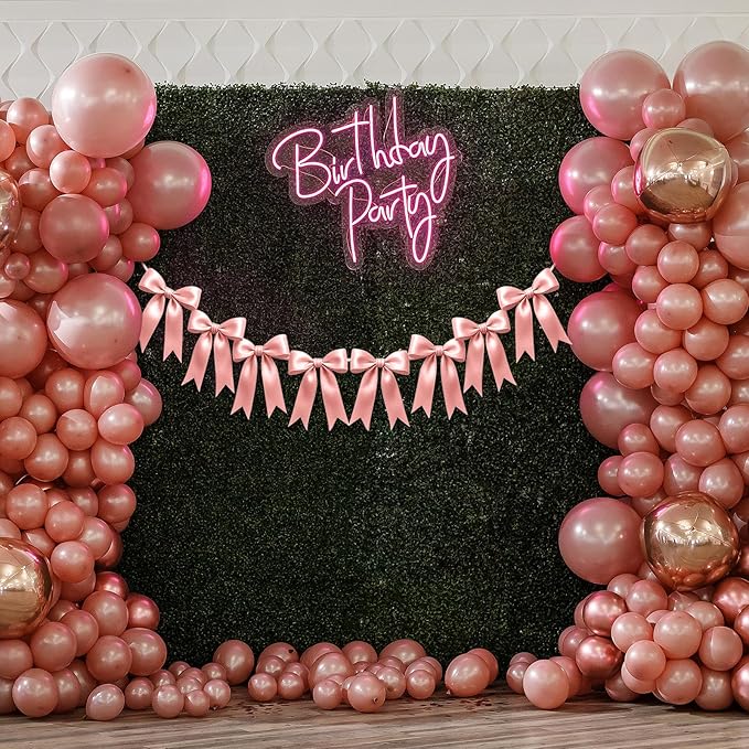 1 String of 8PCS Rose Pink Bow Garland Banner Decoration,Pre-Strung Satin Ribbon Ornaments for Birthday,Bachelorette Party,Bridal Shower,Wedding,Engagement,Baby Shower,Graduation Decor,Anniversary