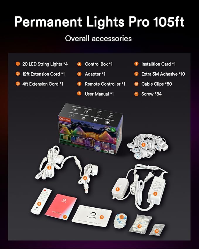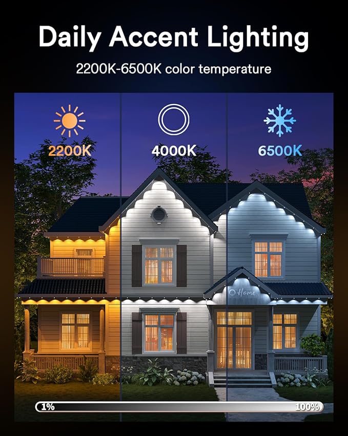 - HOA Year-Round Festive Lighting: Featuring 44 scene modes that elevate your holiday lighting ambiance and everyday illumination. Unlike traditional strawberry lights or icicle lights, Lumary permanent lights installed under eaves for a clean, polished look, no need to worry about HOA regulations or hassle