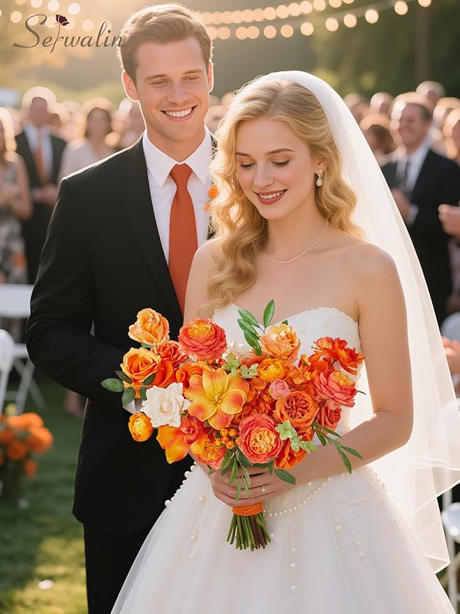 Serwalin Artificial Fall Flowers, Silk Fake Flowers Orange Cake Flowers for DIY Wedding Bridal Bouquet Table Centerpieces Floral Arrangement Fall Home Decor
