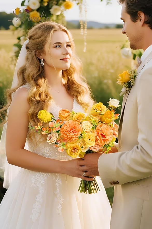Serwalin Artificial Yellow Orange Fall Flowers, Autumn Silk Fake Flowers for DIY Wedding Bouquets Cake Flower, Table Centerpieces Baby Shower Birthday Party Home Decorations
