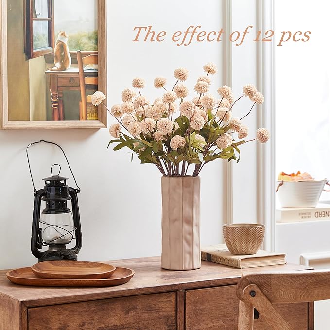 SITUMEIZI Beige Mum Artificial Flowers Beige Faux Silk Mums Mini Chrysanthemum Flowers with Floral Stems 6Pcs for Wedding Centerpieces Decor