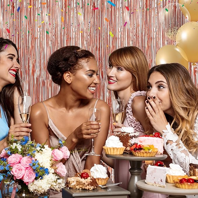 Crosize 7 Pack 3.3 x 9.9 ft Rose Gold Foil Fringe, Streamer Backdrop Curtains, Streamers Birthday Party Decorations, Tinsel Curtains for Parties, Photo Booth Backdrops