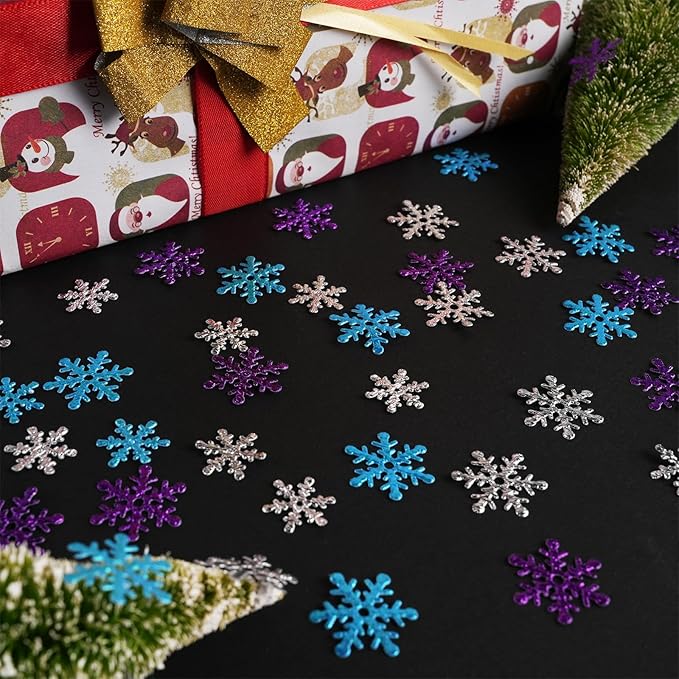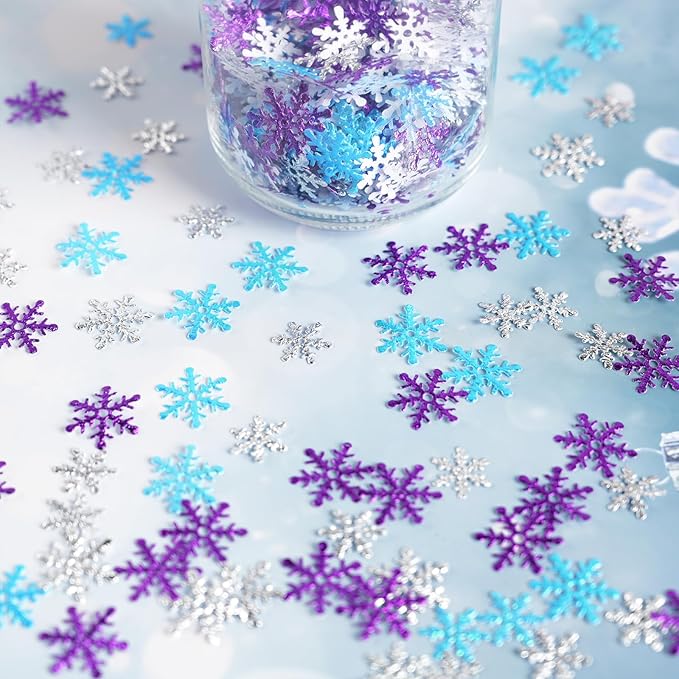 Christmas Snowflake Confetti Decorations,1200Pcs Purple Blue Silver Confetti Snow Party Pack for Christmas Winter Wonderland Table Centerpieces Wedding Birthday Baby Shower DIY Projects Decorations