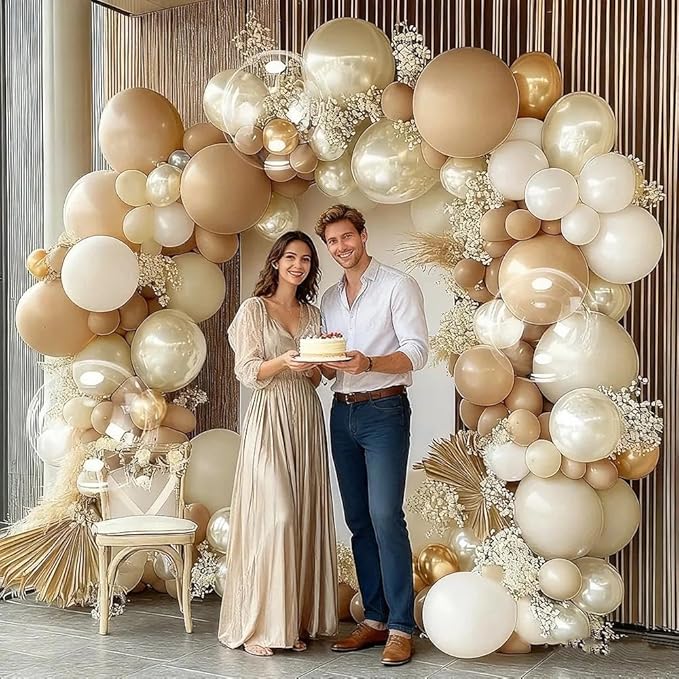 - Easy To Use: The wedding shower balloon arch kit came with everything you needed to set up the cream and white gold balloon arch, including tools and clear instructions. Highly recommend using a balloon hand pump for 5in double stuffed pastel white nude balloons β it made the process so much easier and more fun! and you can also combine different colors and sizes of champagne gold pearl balloons to make your party the most dazzling presence.