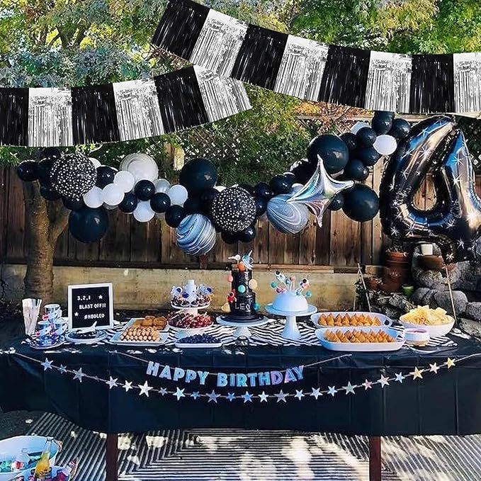 BEISHIDA 3 Packs Metallic Foil Fringe Garland Black Silver Wall Hanging Tinsel Fringe Banners for Car Floats Bridal Shower Wedding Birthday Easter Graduation Holiday Party Decoration(30 Feet)