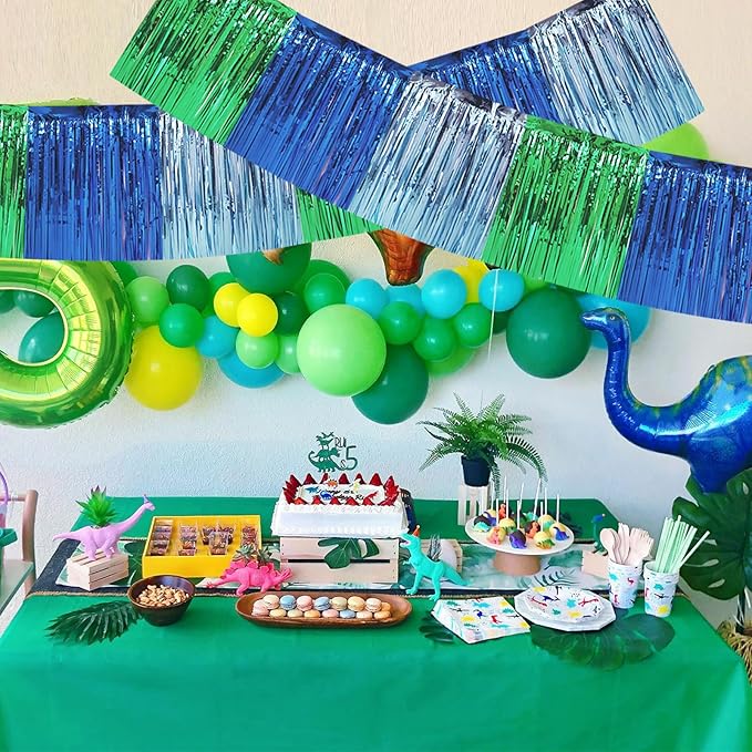 BEISHIDA 3 Packs Metallic Foil Fringe Garland Blue Green Wall Hanging Tinsel Fringe Banners for Car Floats Bridal Shower Wedding Birthday Easter Graduation Holiday Party Decoration(30 Feet)