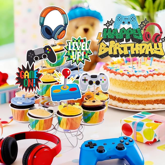 - WIDE APPLICATION: Create a special party with these 49 glitter video game birthday cupcake toppers. your birthday parties will definitely come together!
