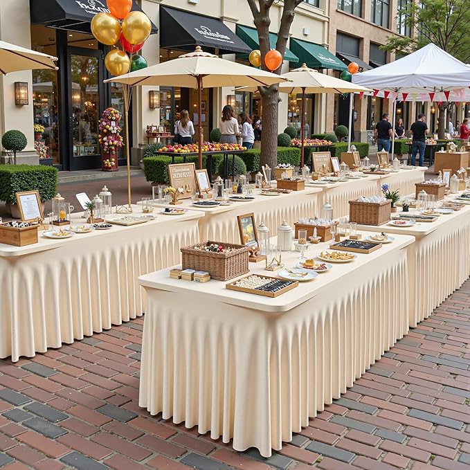 - 🎈【Ideal Decoration Table Cloth rectangle】- Our spandex table skirt enhances event decor for weddings, baby showers, bridal showers, birthday parties, and christmas celebrations. Perfect for banquets, sweetheart table, dessert tables, and cocktail parties, it's also versatile enough for trade shows, vendor events, exhibitions, conferences, hotel receptions, backyard parties, home wedding receptions, picnics, craft fair displays, and jewelry shows.
