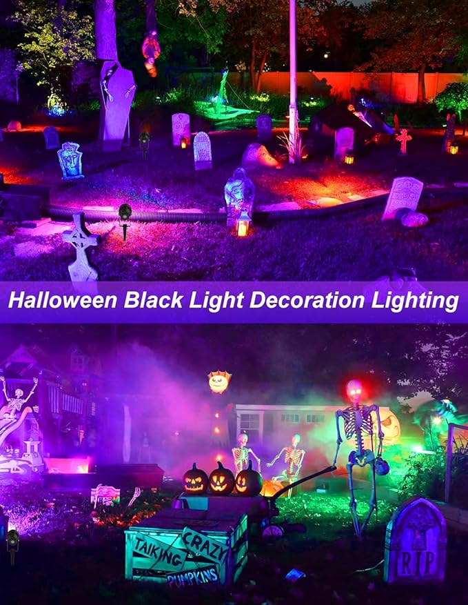 Outdoor Black Light Spotlight, LED Black Lights Waterproof Landscape Lights with US Plug for Glow Party Body Paint Fluorescent Poster Stage Lighting Yard Garden Halloween Decoration(4 Pack)