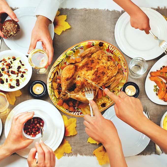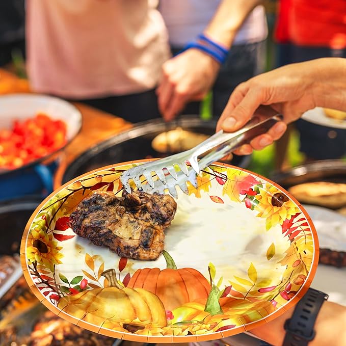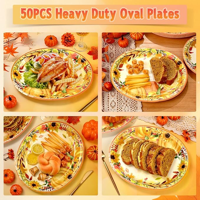 - THANKSGIVING PAPER PLATES: Do you enjoy gathering with friends and dislike the cleaning work after the party? So you definitely need this disposable Thanksgiving oval plates. They can not only reduce your hard work but also decorate your Thanksgiving and fall party.