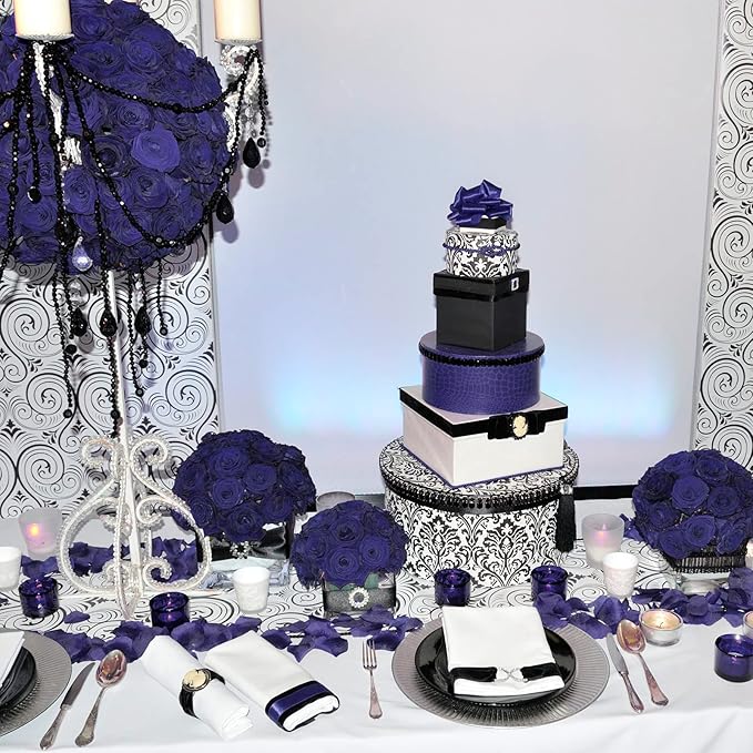 50 Pcs Artificial Foam Rose Flowers Faux Bouquet with Leaves and Stems for DIY Wedding Bouquets Centerpieces Bridal Shower Party Valentine Home Decorations (Navy Blue)