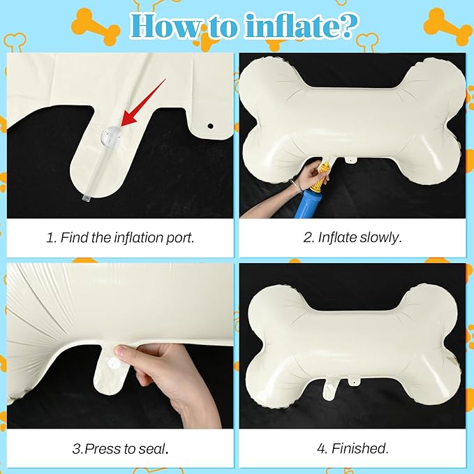 - Dog Paw Balloons Set: This balloons package includes 2pcs 18 inch dog bone foil balloons, 4pcs 12 inch blue polka dot balloons, 5pcs 12 inch paw print balloons, 6pcs 12 inch red balloons, 6pcs 12 inch yellow balloons, 6pcs 12 inch blue balloons and 4pcs 12 inch royal blue balloons. Arrives ready to use with ribbon—just inflate and decorate. Brighten up your party space with our balloons!