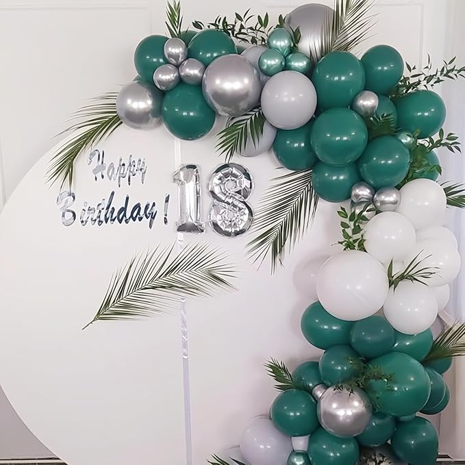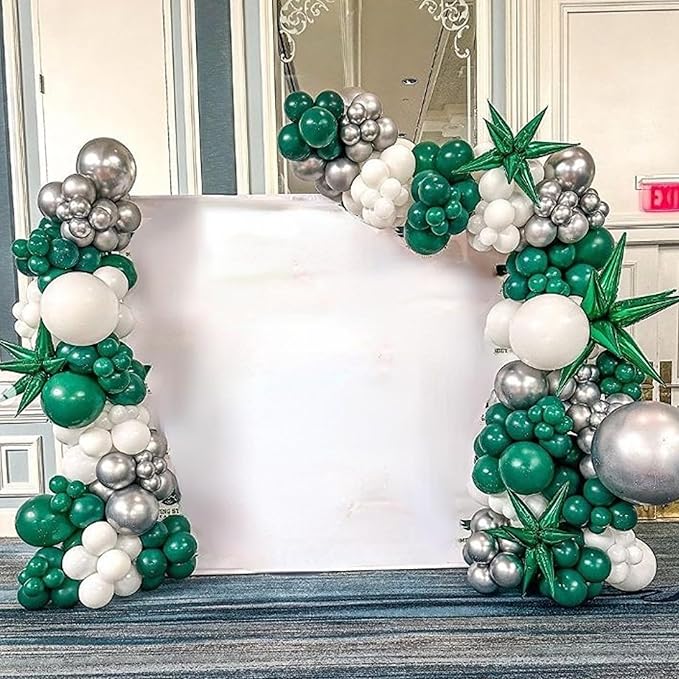 - Green Silver Balloons Set: This 12 inch balloons package includes 15pcs dark green balloons, 15pcs lime green balloons, 10pcs metallic silver balloons. Arrives ready to use with ribbon—just inflate and decorate. Brighten up your party space with our balloons!