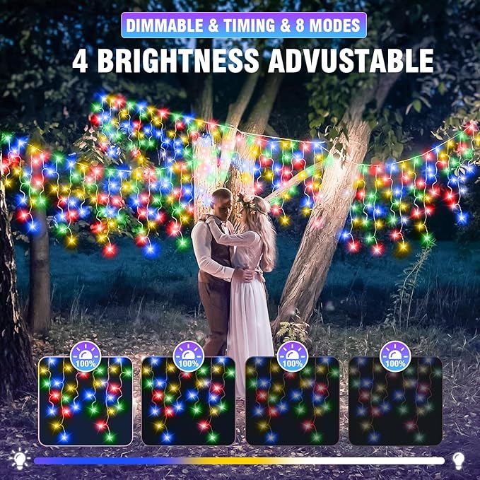 - Waterproof & Remote Dimmable – Rated IP44 waterproof for indoor and outdoor use (please keep the plug dry). Remote control allows 4 brightness levels (25%-50%-75%-100%), making these icicle Christmas lights versatile for rooftops, gardens, parties, and seasonal décor.
