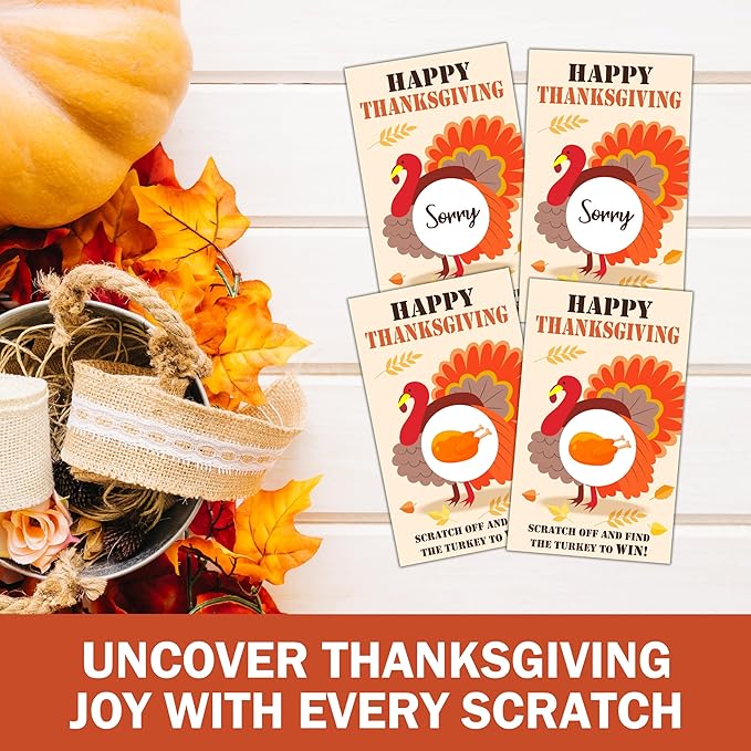 Thanksgiving Scratch Off Cards, Turkey Games For Family Party, Friendsgiving Party Favors For Adults, Thanksgiving Supplies Decorations, Pack Of 50, 03