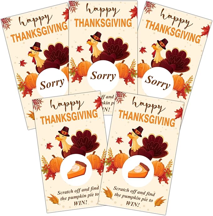Thanksgiving Scratch Off Cards, Turkey Games For Family Party, Friendsgiving Party Favors For Adults, Thanksgiving Supplies Decorations, Pack Of 50, 02